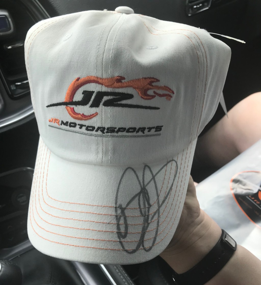 Did I mention there was another Dale Jr encounter to come? We stopped at his Xfinity Series race shop on Monday morning. This shop is one of the smaller stops on our tour, as he has grown from a single car team to a four car Xfinity juggernaut since the building was built. There is a gift shop in the front, and a viewing window to see out to the shop floor. You can also look into the hauler bays from the front of the building. At the time of our visit, the podcast booth was in the back of the gift shop, where ‘Dirty Mo Media’ record several podcasts a week. Since then, they have build a much larger studio, so I am unsure of how well visitors can see the booth. On the morning of arrival, the lady at the gift shop register informed us that Dale Jr was in the building recording a podcast. As we made our way back towards the booth, there was Dale freaking Jr! He was in the booth interviewing Denny Hamlin. Adam and I stood around and watched the interview, there was only a couple of other people watching along with us. When they were done, they both came out and talked to us, shook hands, signed autographs and took a few pictures. HOLY COW!