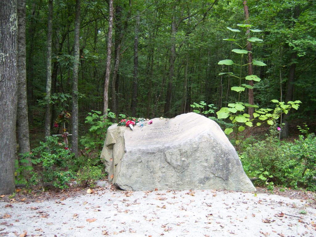 Just outside Camden on March 5, 1963, Patsy Cline’s plane crashed. A number of others were on board with her. You can visit the site, they have a parking area, and then you can walk down a trail to a number of markers, including this large stone that has been etched with information about the crash. Adam and I visited this in 2012 as apart of a day trip through West Central Tennessee.