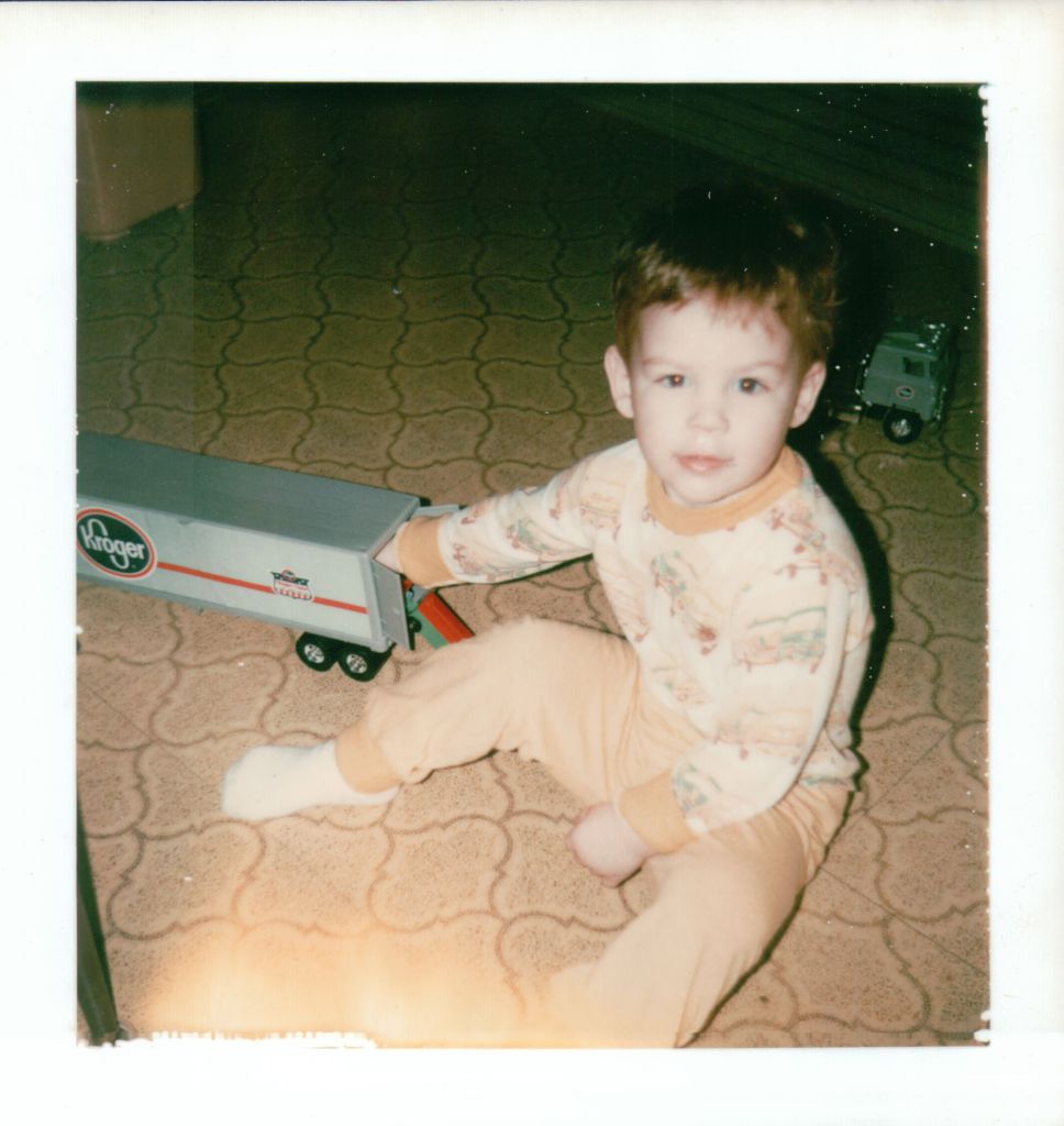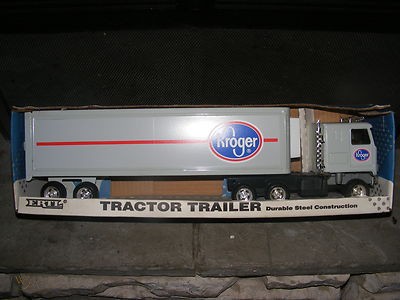 Growing up in Cincinnati, Kroger was a large part of life. My Dad worked there for almost 40 years, along with several other family members. My love for Kroger has remained, as I have now been with them for almost 23 years. Dad worked at the warehouse in Cincinnati, and I spent a lot of time around their trucks. I had two larger scale ones that I loved, one from Ertl that was metal, and then a plastic one that I am not sure who produced. I recently acquired another Ertl one on Ebay and have it in my office. The plastic one, I can’t find any images of online, but do have one of me playing with it on the kitchen floor.